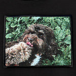 Each piece features a custom woven tapestry panel created from your pet's portrait.